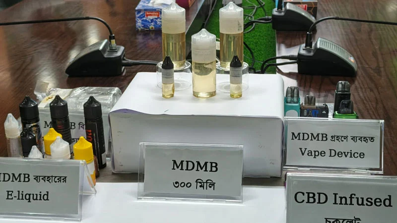 এমডিএমবির কয়েক ফোঁটাই মানুষের স্নায়ুতন্ত্র বিপর্যস্ত করতে সক্ষম। তরুণদের মধ্যে জনপ্রিয় ভেপ ডিভাইসকে আড়াল হিসেবে ব্যবহার করে এই মাদক দ্রুত নেশা ধরায়, হ্যালুসিনেশন, আক্রমণাত্মক আচরণ থেকে শুরু করে হৃদস্পন্দন অস্বাভাবিক হওয়ার মতো মারাত্মক শারীরিক ঝুঁকি তৈরি করে। সাধারণ ফ্লেভারড লিকুইডের মতো দেখতে হওয়ায় এটি চিহ্নিত করা প্রায় অসম্ভব। ফলে ব্যবহারকারীরা বুঝতেই পারে না যে তারা আসলে গ্রহণ করছে এক উচ্চমাত্রার প্রাণঘাতী মাদক, যা আন্তর্জাতিকভাবে নেক্সট জেনারেশন সিনথেটিক ড্রাগ হিসেবে শঙ্কার কারণ হয়ে দাঁড়িয়েছে। প্রচলিত নিকোটিন সম্বলিত ভেপ লিকুইডের সঙ্গে শুধু ১-২ ফোঁটা এমডিএমবি যুক্ত করে এই মাদক সেবন করা হয়।