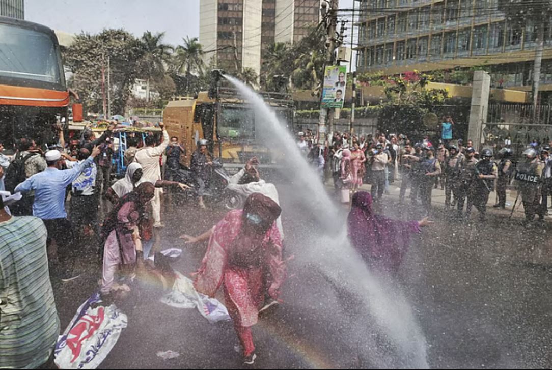 মুনাফাসহ গচ্ছিত আমানতের সম্পূর্ণ অর্থ দ্রুত ফেরতের দাবিতে বাংলাদেশ ব্যাংকের সামনে অবস্থান নিয়েছেন একীভূত হওয়া ৫টি ইসলামী ব্যাংকের আমানতকারীরা। বৃহস্পতিবার (০৫ মার্চ) বাংলাদেশ ব্যাংকের সামনে বিক্ষোভ ও অবস্থান কর্মসূচি পালন করেন তারা। একপর্যায়ে শাপলা চত্বর এলাকায় প্রধান সড়ক অবরোধ করলে পরিস্থিতি নিয়ন্ত্রণে আনতে আইনশৃঙ্খলা রক্ষাকারী বাহিনী জলকামান ব্যবহার করে তাদের ছত্রভঙ্গ করে দেয়।