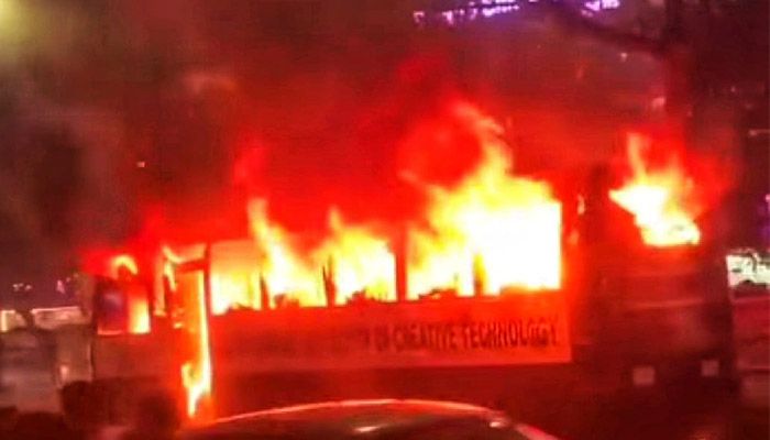 ধানমন্ডির ল্যাবএইডের সামনে শান্ত মারিয়াম বিশ্ববিদ্যালয়ের বাসে অগ্নিকাণ্ড