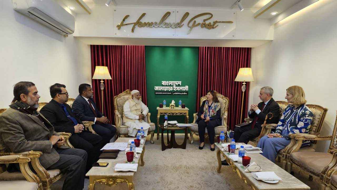 বুধবার (৭ জানুয়ারি) সকালে জামায়াতে ইসলামীর আমির ডা. শফিকুর রহমানের বসুন্ধরা কার্যালয়ে এই সাক্ষাৎ অনুষ্ঠিত হয়। ইউরোপীয় এক্সটার্নাল অ্যাকশন সার্ভিসের এশিয়া ও প্রশান্ত মহাসাগরীয় বিভাগের পরিচালক এবং ইইউর ডেপুটি চিফ পাওলা পাম্পালোনির নেতৃত্বে প্রতিনিধি দলে ঢাকায় নিযুক্ত ইইউ রাষ্ট্রদূত ও আরেকজন কর্মকর্তা উপস্থিত ছিলেন।