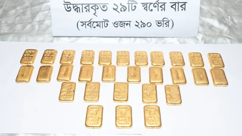 সিএমপির গোয়েন্দা পুলিশের (ডিবি-উত্তর) হাবিবুর রহমান প্রামাণিক বলেন, ‘গ্রেপ্তার আসামিদের স্বীকারোক্তির ভিত্তিতে শুক্রবার সকালে ঢাকার মোহাম্মদপুরের রায়ের বাজার এলাকায় একটি বাসা থেকে একটি কাগজের বাক্স উদ্ধার করা হয়। ওই বাক্সের ভেতর মোড়ানো অবস্থায় ২৯টি সোনার বার পাওয়া যায়। উদ্ধার হওয়া সোনার ওজন ২৯০ ভরি। বাকি আসামিদের গ্রেপ্তারে অভিযান চলছে।’
