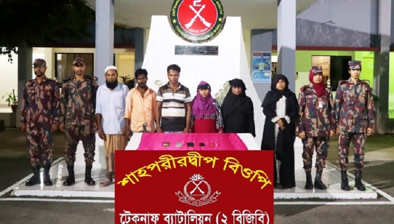 আটকরা হলেন, মিস্ত্রিপাড়ার প্রবাসি মোহাম্মদ আখেরের স্ত্রী শামসুন্নাহার (৩৫), বালুখালী ২০ নম্বর রোহিঙ্গা ক্যাম্পের মৃত জালালের স্ত্রী হোসনে আরা (৩১), শালবাগান ২৬ নম্বর ক্যাম্পের মৃত সৈয়দ আকবরের স্ত্রী নুরুন্নিসা (৪৯), ২০ নম্বর ক্যাম্পের আবুল হাসেমের ছেলে মোহাম্মদ ইসমাইল (৫০), জামতলি ১৫ নম্বর ক্যাম্পের আবু সামাদের ছেলে হারুন (৩৫), ২৬ নম্বর ক্যাম্পের সৈয়দ আহমেদের ছেলে ইউসুফ আলী (৪৭)।অভিযান চলাকালীন কালু মিয়া (৩৫) ও হাশেম মোল্লা (২৫) সহ ৪ জন পালিয়ে যাওয়ার তথ্য জানিয়েছেন বিজিবির অধিনায়ক। তিনি জানান, সাগর পথে মিয়ানমার থেকে পাচার করে বেশ কিছু বিদেশি নাগরিককে পাচারকারী চক্র টেকনাফের শাহপরীরদ্বীপের মিস্ত্রিপাড়া এলাকার একটি বাড়িতে লুকিয়ে রেখে পরে তাদেরকে বিভিন্ন ক্যাম্পে সরিয়ে নেয়ার প্রস্তুতির খবর পেয়ে বিজিবি এই অভিযান চালায়। বিজিবি শাহপরীরদ্বীপের মিস্ত্রিপাড়া এলাকার শামসুন্নাহারের বাড়িটি ঘেরাও করলে চক্রের ৪ জন সন্দেহভাজন বাড়ির পিছনের দিক দিয়ে দৌড়ে পালিয়ে যায়। পরে ভেতরে প্রবেশ করে প্লাস্টিকের ছাউনি দেওয়া একটি ঘর থেকে বাড়ির মালিক শামসুন্নাহারসহ মানব পাচারকারী চক্রের ৬ জন সদস্যকে আটক করা হয়।