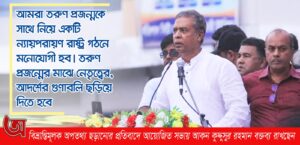 আমরা তরুণ প্রজন্মকে সাথে নিয়ে একটি ন্যায়পরায়ণ রাষ্ট্র গঠনে মনোযোগী হব। তরুণ প্রজন্মের মাঝে নেতৃত্বের, আদর্শের গুণাবলি ছড়িয়ে দিতে হবে। আগামীর এমন একটি স্বনির্ভর বাংলাদেশ তাদের হাতে তুলে দিতে চাই যেখানে শহীদ জিয়ার আদর্শ প্রতিফলিত হবে। দেশনেত্রী বেগম খালেদা জিয়ার সাহস এবং তারেক রহমানের স্বপ্নকে বাস্তবে রূপায়নের মাধ্যমেই গড়ে উঠবে নতুন বাংলাদেশ, স্বপ্নের বাংলাদেশ।