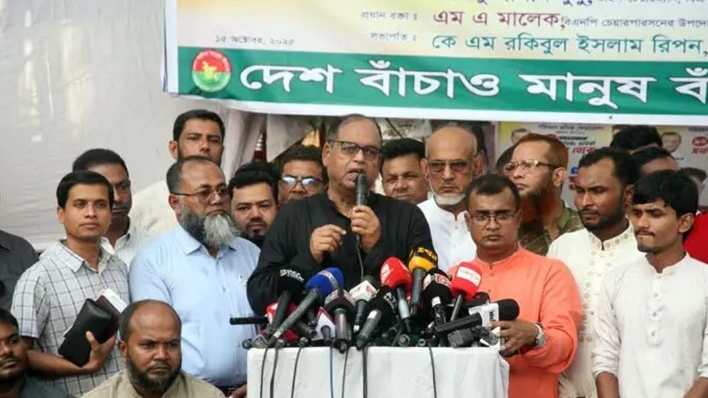 বুধবার জাতীয় প্রেস ক্লাবের সামনে ‘দেশ বাঁচাও, মানুষ বাঁচাও’ আন্দোলনের উদ্যোগে এক নাগরিক সমাবেশে শামসুজ্জামান দুদু এসব কথা বলেন। জাতীয় নির্বাচন ঘিরে দেশে-বিদেশে ষড়যন্ত্রের প্রতিবাদে এই সমাবেশের আয়োজন করা হয়।